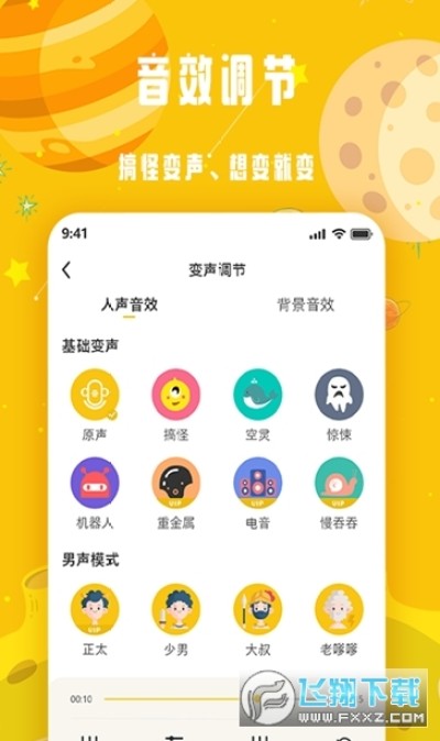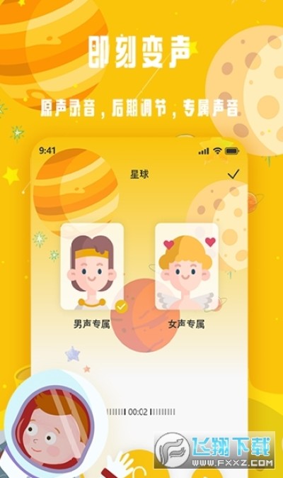 变声星球是一款可以让用户在交友中改变自己声音的手机软件,用户使用这个软件时可以先录制一段音频,然后在