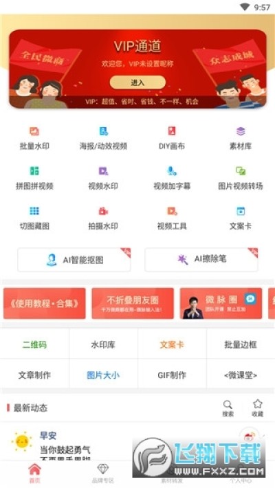 微商水印pro破解版是经由北京助梦工场科技有限公司专为广大从事微商行业的用户朋友所精心打造的一站式作图做视频相机应用,相信从事过微商行业的人员度知道,该行业不仅需要每天不断的发圈分享,图片文案的精美排版制作也非常重要,因此有一款专业好用的图片视频制作应用是必不可少的,而该软件可以说就能够让微商从业者更上一层楼,它汇集了批量水印、海报动态视频、DIY画布、视频加字幕、文案卡等多功能于一体,有着海量素材模板任你免费使用,轻松制作出高品质质量的微商图片、海报等素材,还支持一键添加专属文字水印、图片批量处理、修改等操作。非常的方便快捷,轻松提高你的工作效率成为你的好帮手,有需要的朋友欢迎前来下载使用哦!
