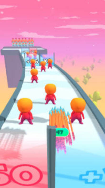 1、成为火柴箭神在跑道上奔跑前行,收集跑道上散落的箭矢,壮大自己的队伍。