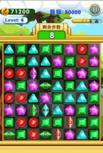 -游戏中,你只需要三消就可以啦,至于四消,就可以合成一个强大的宝石,每当你消除,就会有跟多的积分和威力