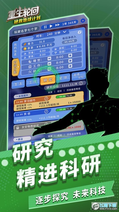 《重生轮回拯救地球计划》一款科幻题材模拟经营类的休闲游戏。玩家扮演一个拯救世界的穿越者,为了阻止未来降临的外星人毁灭地球,进行战斗、研究、工作、生活等一系列操作;