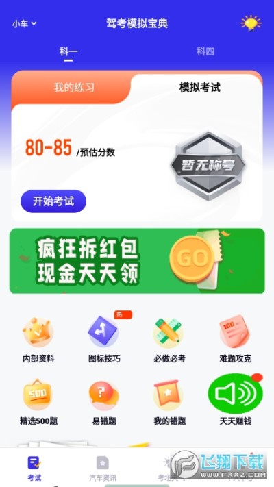 驾考模拟宝典app是一款最新的驾考模拟做题训练软件,软件内含多个科目一以及科目四笔试考试试题,在这里每天还可以阅读最新的汽车行业资讯,贴心为你带来当日考场天气提醒,对软件感兴趣的话不妨点击下载试试!