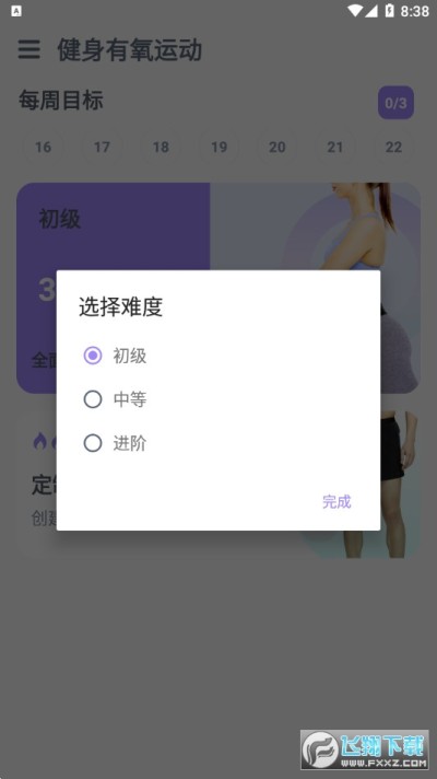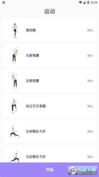健身,简单的界面,配有动画,计时器和语音教练,