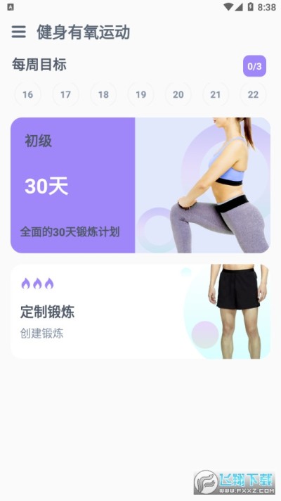健身有氧运动app为您提供免费的男女健身计划,引导您完成一些有氧运动锻炼和训练;这是一种快速而紧张的日常有氧运动,可同时提高您的心率,燃烧卡路里和调理肌肉,无论身在何处,都可以做到,不需要任何设备。