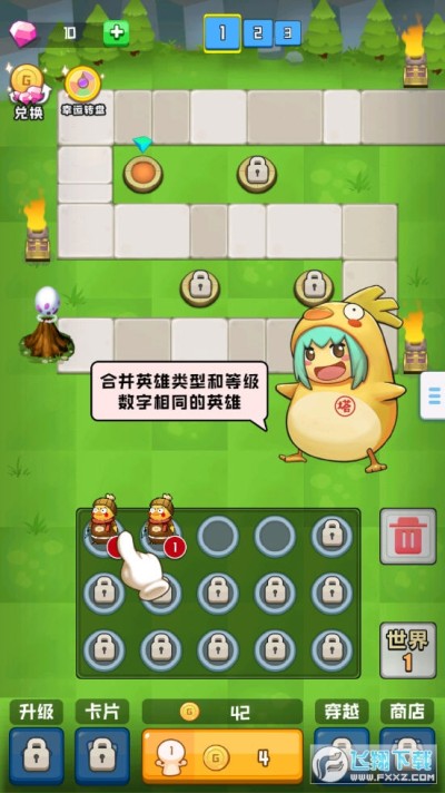 这是一款你可以体验到挂机+合成+塔防这几大休闲毒瘤的游戏。玩家需要做的就是通过合成的方式,尽可能的合成高级的炮塔,然后放置到对应的炮塔点上,对源源不断过来的怪物进行拦截。
