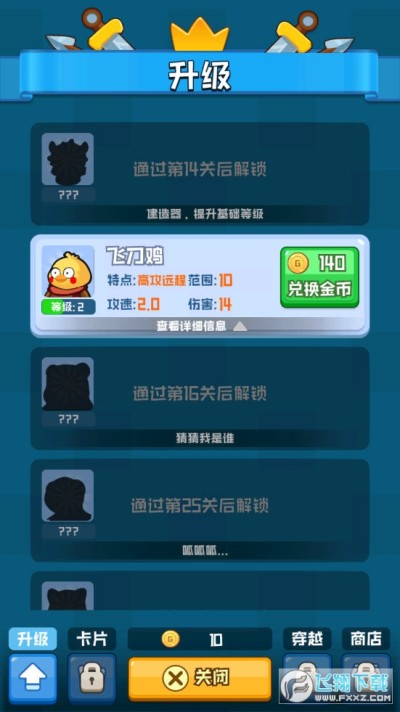 1、防御塔不断的升级,升级后攻击力提升,攻击速度提升。