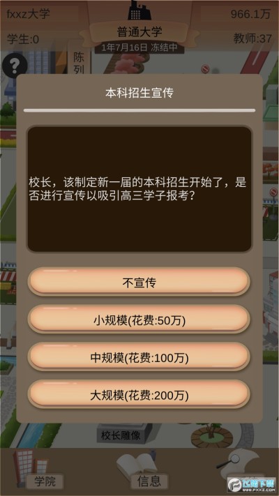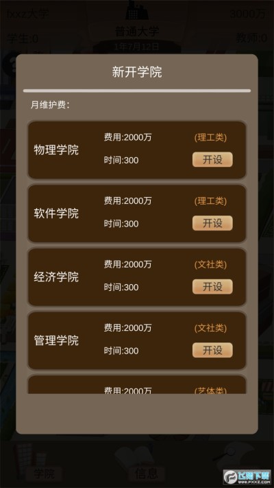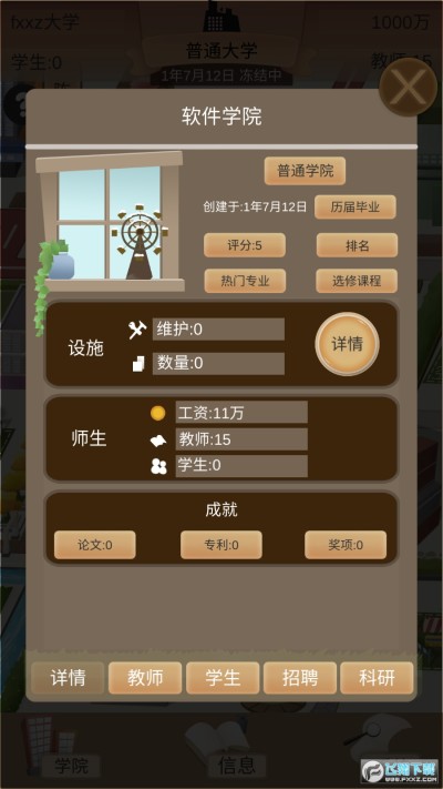 2.开始游戏,一个字,苟,没错,前期一百万一定要勾住,前五六年建筑都别建,老师都别收(后期有钱了建个帝国都没人管你)游戏前期是学校的积淀期,一句话,勾住,每个月右上方加号点一次,给很多小钱钱,每个月都点。