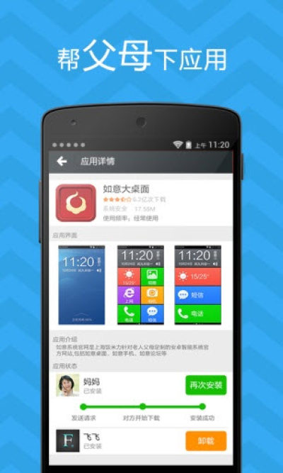 2.爸妈可以接收子女远程消息;包括远程协助,想一下等消息