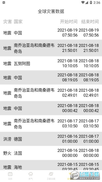 提供全球灾害数据,包括地震、野火、山洪、冰冻等数据