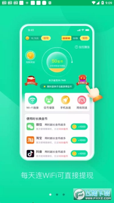 3、畅享WIFI的同时,还可以获得金币,金币达到一定数量后即可欢乐进行提出。