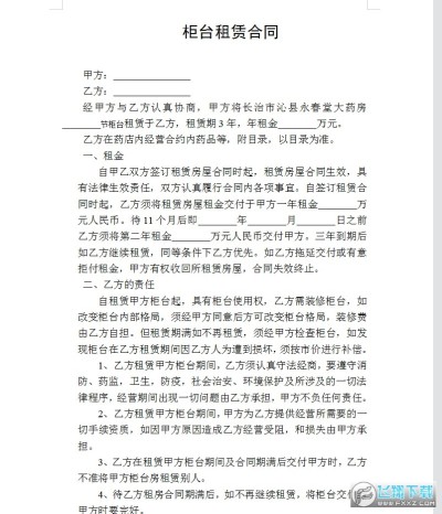 1、乙方租赁甲方柜台期间,乙方须认真守法经商,要遵守消防、药监,卫生,防疫,社会治安、环境保护及所涉及的一切法律程序,经营期间出现一切问题由乙方承担,甲方不负任何责任。
