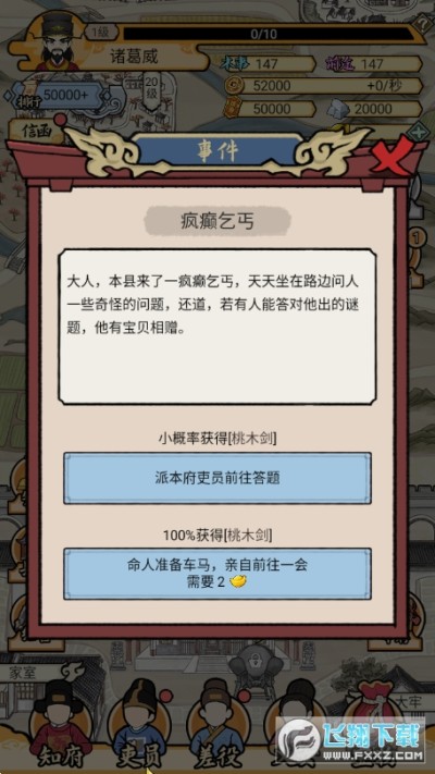 - 招收官员 —— 一个有实力的知府,身边少不了文武能人,在这里你可以根据你的喜好,招收各具特色的差役和吏员,他们将可以帮你分担不少日常事务。
