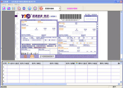 如果在win7下不能正常运行,请以管理员权限运行。程序适用圆通快递单打印,可单独打印也可批量打印。特点如下:直观, 操作简便,在电子表格中输入数据,在上方视图中立即显示第功能多,支持批量打印、支持文本方式导入导出,支持电子表格导入导出,支持文件扫描,功能强大,可以建立1000条记录,文档有固定格式,支持无限个文档为私有格式,杀软拦截要放行。从电子表格交换数据,用“CTRL+V”,注意数据列对应。