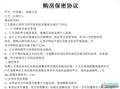 购买楼盘的时候通常会有优惠价格或者优惠活动,开发商都会要求和你签保密协议,那么购房保密协议怎么写呢?今天给大家带来购房保密协议doc文档,直接下载即可使用哦!