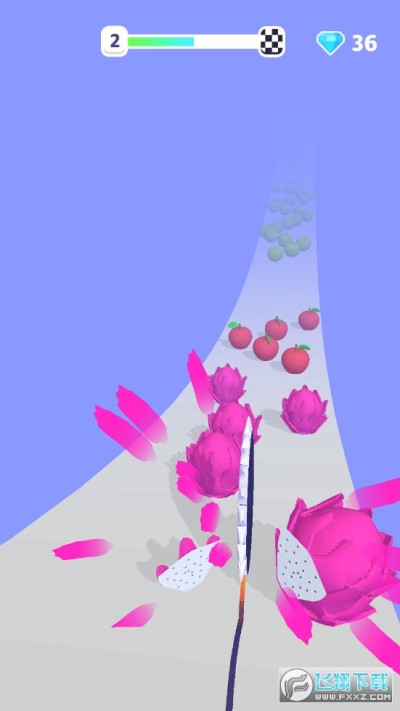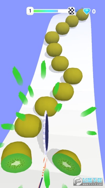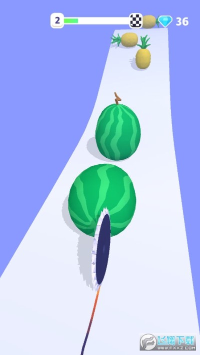 休闲小游戏。《水果切不停安卓版》中玩家操作一个滚动的齿轮,不断切割关卡的水果,简单的左右移动,不同难度的关卡挑战,努力切更多的水果,获取钻石来解锁更多皮肤,更多精彩赶快下载吧!