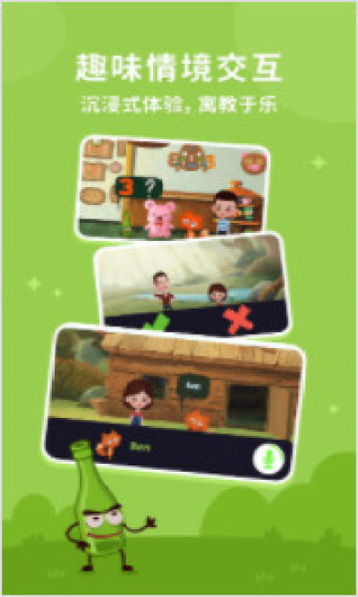 ABC语言趣味动画冒险故事互动,打破传统枯燥的填鸭式英语教学,根据儿童英语学习认知规律,从听、说、读、测四个维度,将英语教学融合于剧情动画和学习游戏中,使孩子主动、有效地完成学习任务,并能从中提高语言能力、培养好习惯、拓展认知及社交能力。