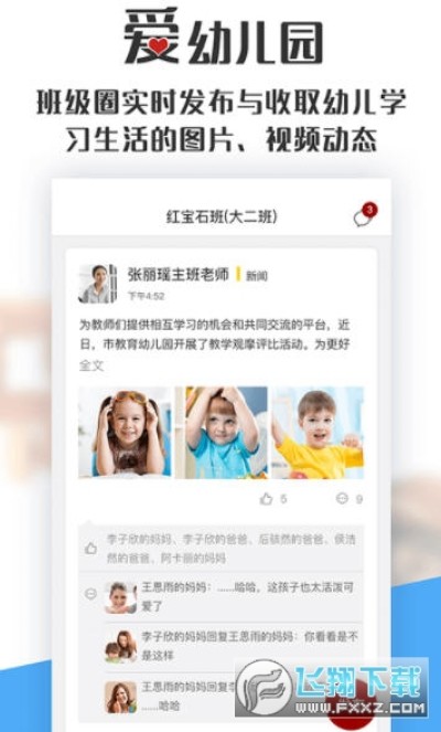 班级圈实时发布与收取幼儿学习生活的图片、视频动态