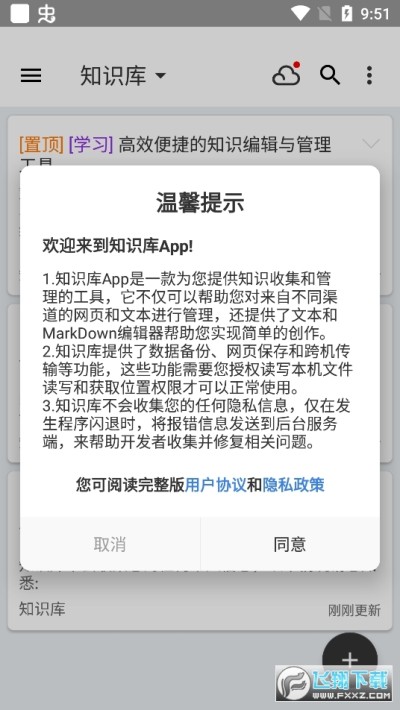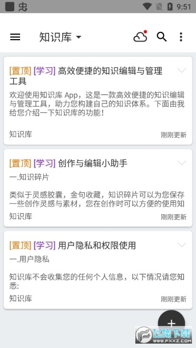 2. 云备份,这非常重要!!! 将知识库备份到云端,即使遭遇手机损坏或者丢失等意外情况也可以通过云备份将知识库恢复到新的设备。