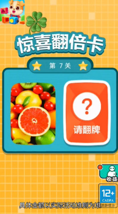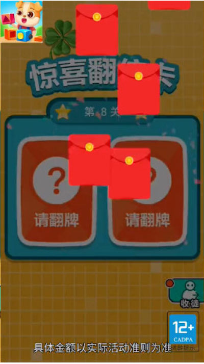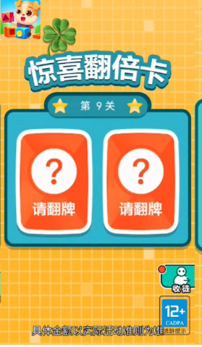 2、非常考验运气的翻牌游戏,每个级别都有不同的卡选择,一种是正确的,一种是错误的。