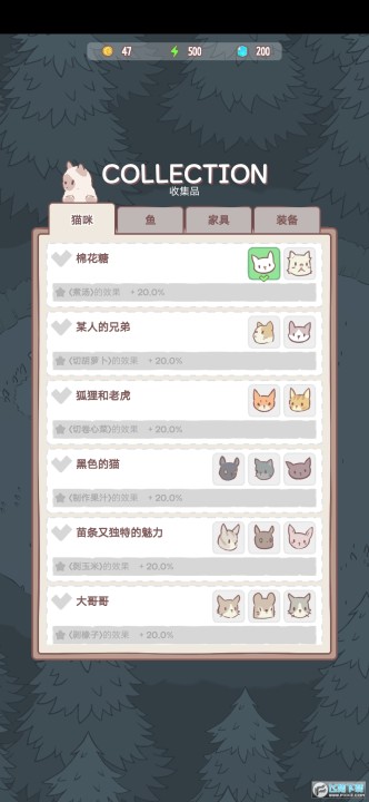 1.游戏提供了各种可爱的猫咪可以解锁。玩家可以选择各种不同类型的猫咪和它们一起互动,培养真挚的情感