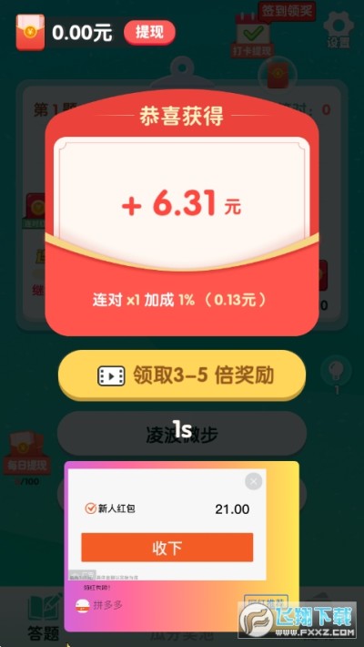 答题大挑战,下载APP,答对10题。提现0.3元,要绑定手机号,提现秒到微信零钱!付款商户“红包助手”。