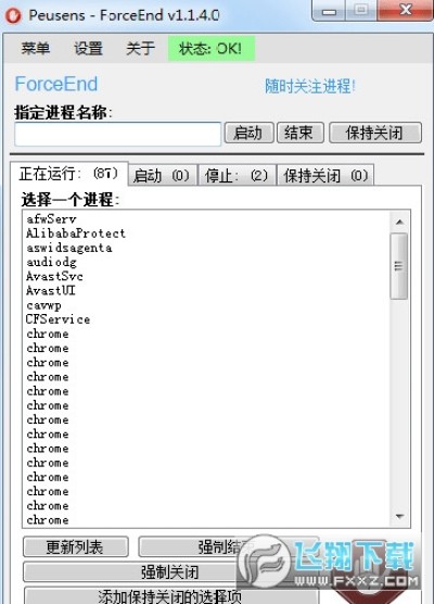 ForceEnd是一款简单好用的结束进程的软件,有时候我们的电脑卡了,通过这款ForceEnd可以显示正在运行的进行,大家可以关闭卡掉的进程,这样电脑又能正常运行了,有需要的小伙伴快来下载吧。