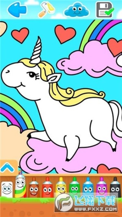 支持自由配色,孩子可以根据自身想象力和审美而自由的选用画笔的颜色搭配;