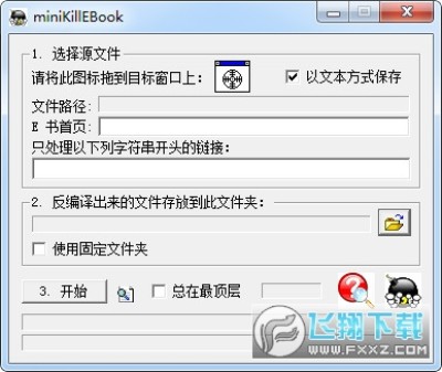 打开一个CHM,exe文件,然后将上图标识的图标点击后拖到打开的文件上,然后点击开始即可,绝大部分的chm,exe文件都可以反编译转txt格式