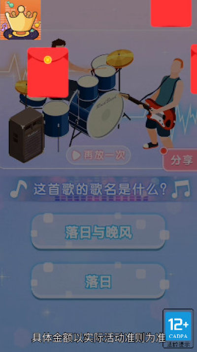 4、根据前奏进行猜歌答题,答对闯关就能领取红包,每日挑战趣味多多;