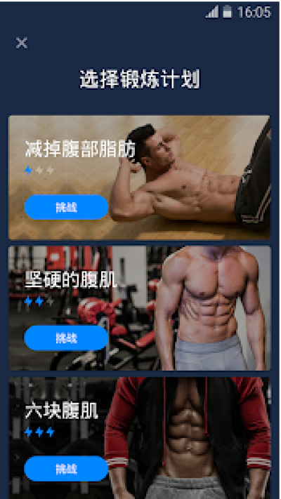 减掉腹部脂肪、坚硬的腹肌、六块腹肌--这3个等级的锻炼计划可以帮助你减掉腹部脂肪并一步步打造出完美腹肌。不论你是健身小白还是健身达人,都能找到适合自己的锻炼计划。每一天都有不同的锻炼,始终保持新鲜又有趣。