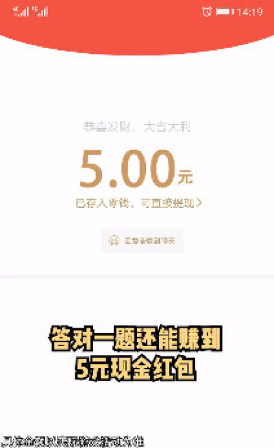 ·参与答题还有机会获得现金红包,红包的金额是不等的,你答题越多获得的奖励越丰厚
