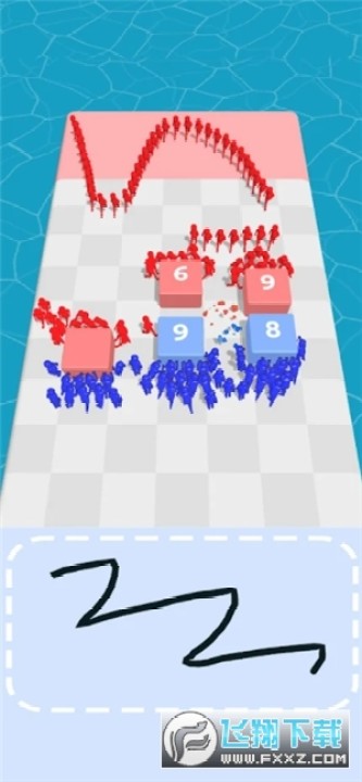 2、不断的聚集你的小人来把方块推到对方场地,不断的前进来让你赢得比赛的胜利。