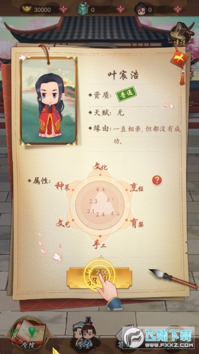 2、在这里,你能开创书院挑选门生,招聘名师解疑答惑,结识红颜伴读左右,还能参与其他丰富精彩的学院活动。