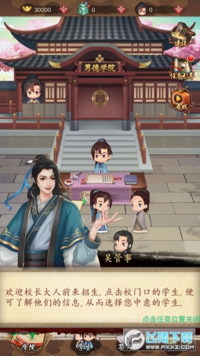 2、古风画风看起来还不错,经营你的男德学院,不断的招收更多的学生。