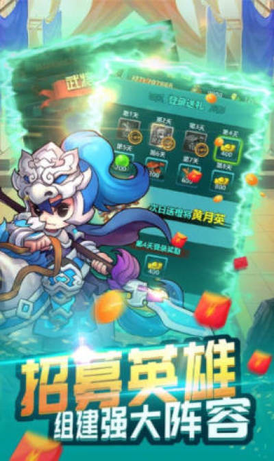 1、可爱迷人的Q萌卡通画风,上百位各具特色的三国武将,收集组建自己的武将军团