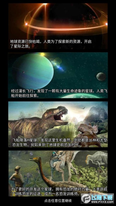 地球资源已快枯竭,人类为了探索新的替代资源,开启了星际之旅。 经过漫长宇宙飞行,发现了一颗有大量生命迹象的星球。 人类飞船开始前往探索。飞船降落H星球,发现这里生机盎然,到处都是丛林和大型恐龙生物,宛如来到了地球史前恐龙时代。 为了更好的开发这个星球,拥有恐龙的绝对力量,人类开启了训练恐龙的征途,成为一名伟大的恐龙训练师。