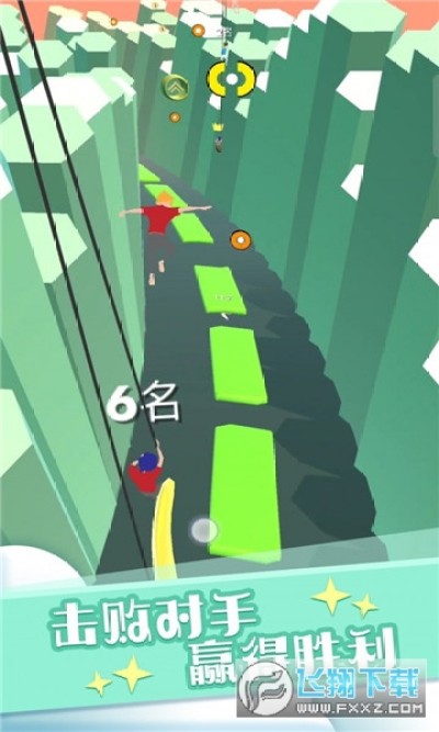 玩家需要控制角色在适当的时机使用缆绳摇摆躲避障碍物前进;