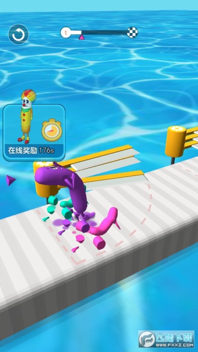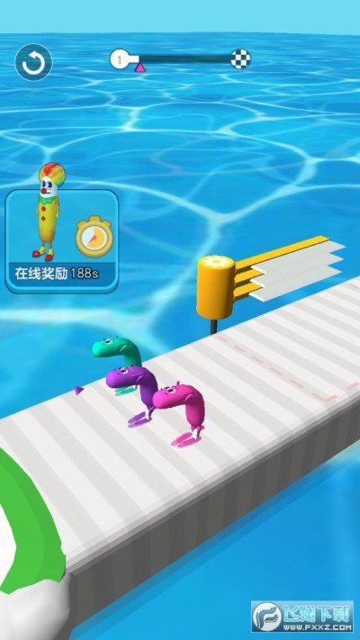 2、在头号玩家游戏中控制自己的香蕉人取乐,避免大球在赛道上从天而降,越过推棍会落水的屏障。