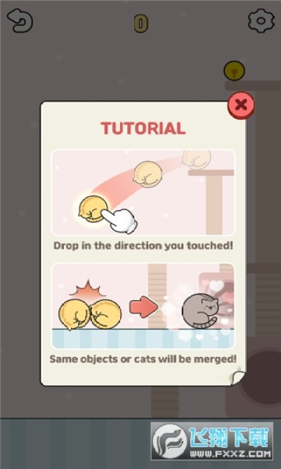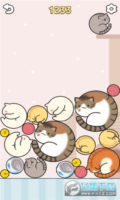 1、合成的方式非常简单,只需要让下落的猫咪放置在一起就能合成了;