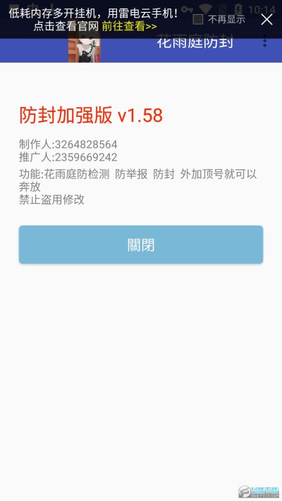 花雨庭防封其实就是花雨庭防封器,此软件能够适用于和平精英等诸多游戏,进入游戏的同时,打开此软件,它还能支持悬浮窗模式,就能很好的避免游戏过程中的一些举报,一些封号的问题,保证你有个极致的游戏体验,感兴趣的可以下载体验吧。