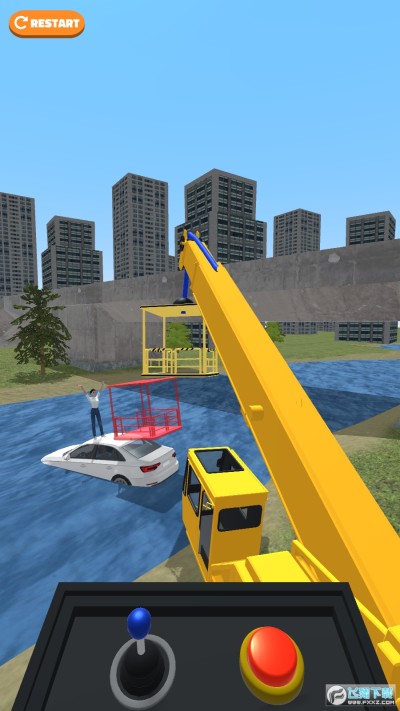 我们的游戏由包含各种任务的部分组成。逼真的物理模拟让您可以完全控制起重机:提升、旋转等。用按钮和操纵杆控制起重臂,将起重臂放在红点上,通过按钮放下装载机救人。