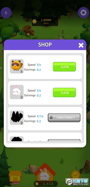 解锁新的动物时,会获得巨额奖励,你所能购买的动物也会进行升级