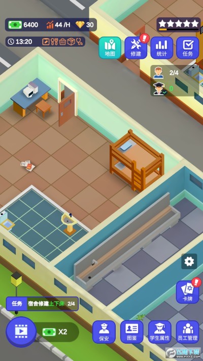 校园模拟器无限货币版是一款卡通风格的模拟经营类手游,玩家在游戏里可以经营自己的学校,建造学院宿舍等各种建筑,招募优秀的教师吸引学生加入学校,获取金钱来升级学校的各种设施获取更高的评价,轻松可爱的画面玩法等玩家们来下载体验!