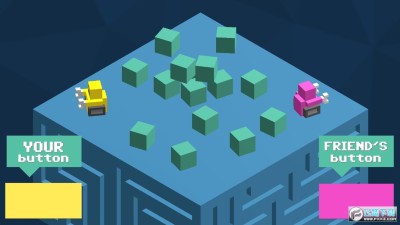 1、支持双人同屏竞技。游戏玩法是简单上手的大乱斗模式,玩家不停地按键来推动对手;