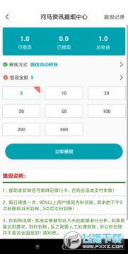 3、河马资讯首次满5元即可提现,后续满10元起提现,24小时内审核到账,每人每天限提一次