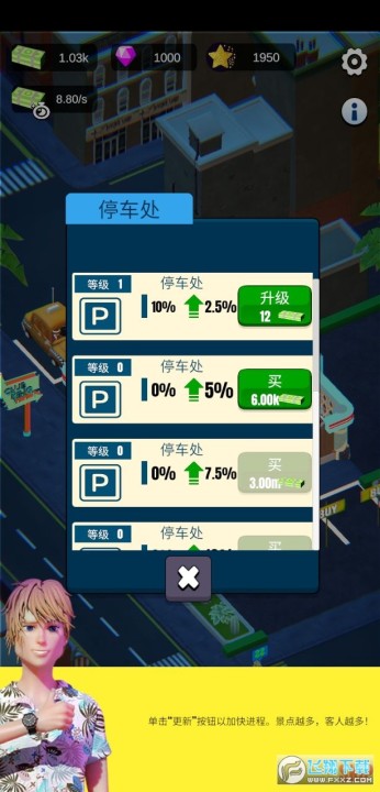 在这款游戏中,你需要从一家小酒吧逐渐发展到之后整个城市的娱乐大亨,这不仅需要你升级以往的建筑,还需要你购买新的地皮,并且不同的楼层需要打造不同的游戏设施,这样你才能够更快的获取金币