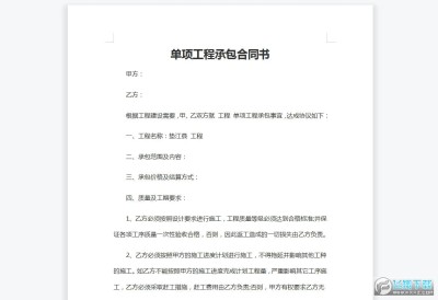 单项工程是一个建设单位中具有独立的设计文件、竣工后可以独立发挥生产能力或工程效益的工程.是建设项目的组成部分,在承包的时候拟定一份比较安全全面的单项工程承包合同书,在工程期间出现事故或是纠纷可以更好的维护双方的权益,这里小编给大家整理了一份标准的单项工程承包合同书以供参考!