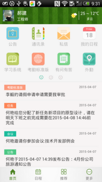 1、移动办公室app在协同办公的应用基础之上,以增强型的工作流为引擎、融合知识管理系统、并加入更广泛的日常业务工作管理包括文档资源的管理等;