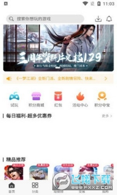 云亦手游是一款拥有大量福利的游戏盒子,我们可以在这里下载到各种游戏,随时随地的玩游戏,领取对应游戏礼包,云亦游戏盒子里面有积分系统,可以兑换各种商品,有兴趣的小伙伴赶紧下载吧。