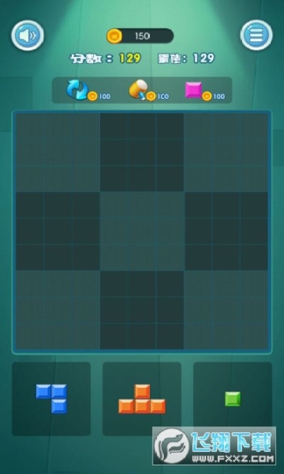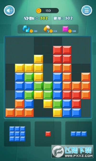 将方块拖进棋盘中,使各个不同形状的方块能够填满棋盘中的任意一个九宫格或行/列后,合并消除得分。